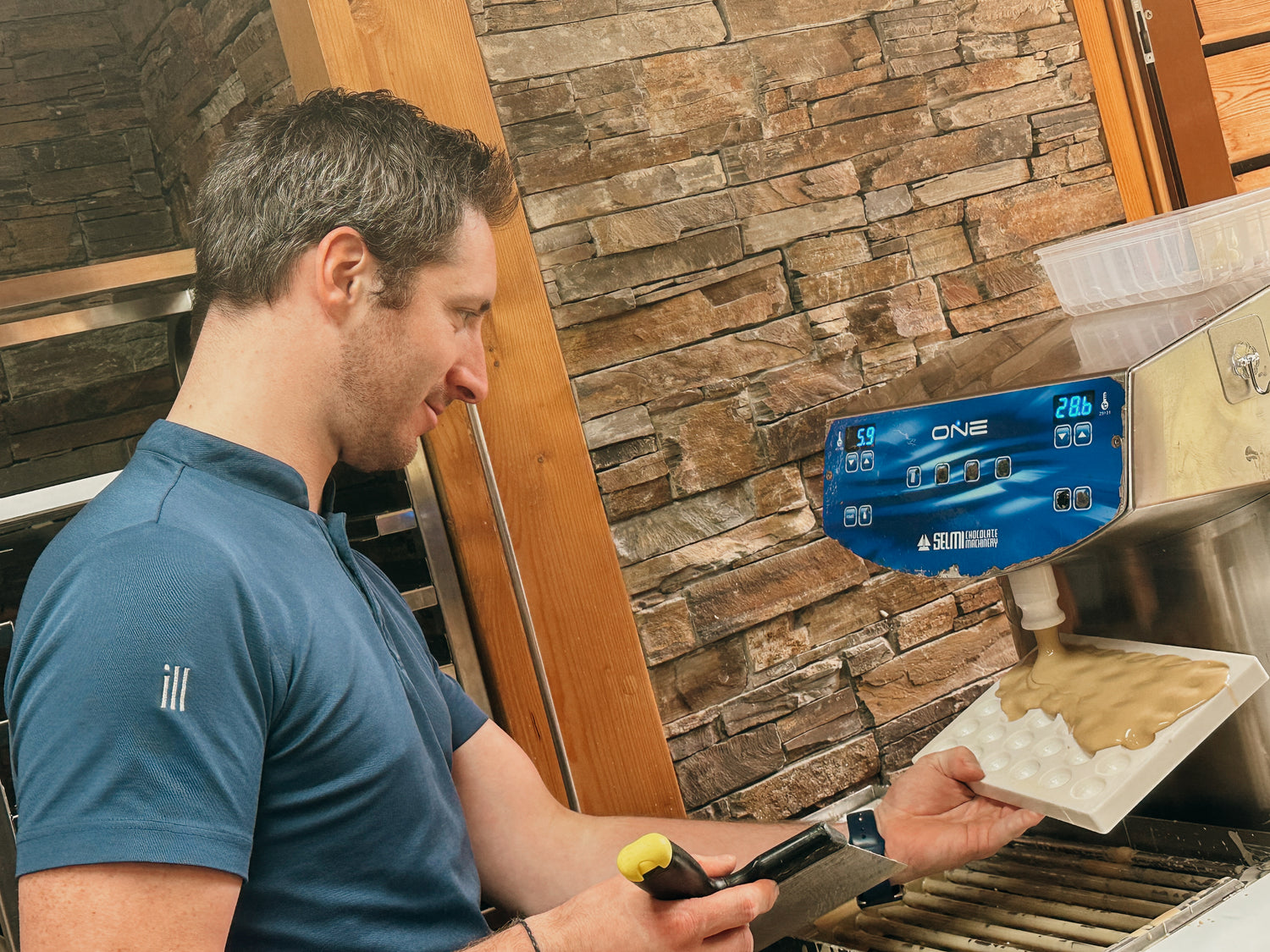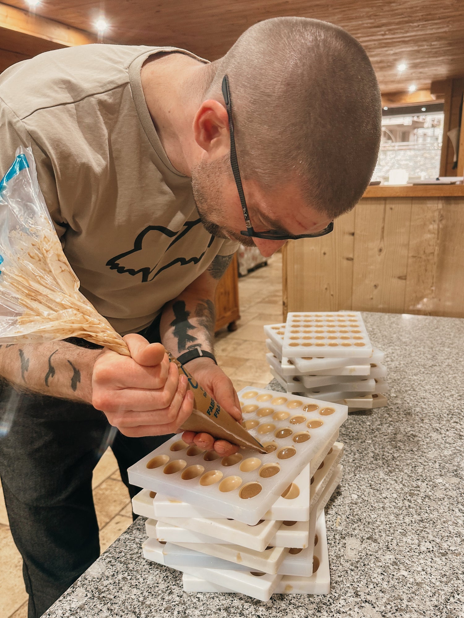 All our chocolates are made entirely in our chocolate factories in Les Gets and Morzine, using artisanal know-how that has been passed down and perfected over the years. From tempering the chocolate to coating it, every step is carried out on-site to guarantee impeccable quality and authentic taste .